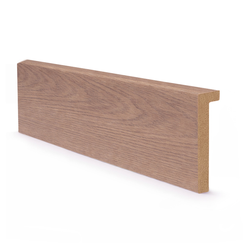 Basil Wood Veneer L-Cover Skirting captures a vintage oak tone with naturally aged character. Its L-cover profile provides extra depth for strong concealment and clean wall lines. The veneer grain enhances warmth and heritage-inspired styling. Ideal for rustic interiors, boutique spaces, and classic residential design.
