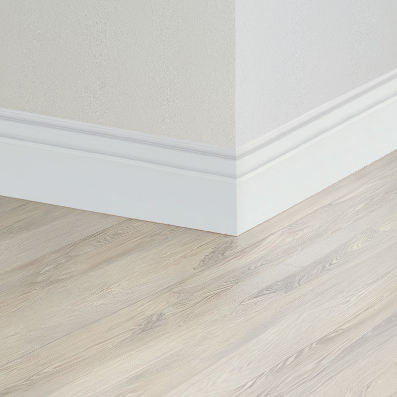 Royal Parquet Victorian White Foiled Lacquered Skirting Boards are designed for interiors that require architectural character and refined detailing. The elegant Victorian profile introduces depth and visual interest, making it an ideal choice for classic spaces, luxury villas, and traditionally styled interiors.