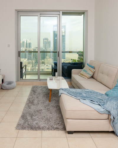 A young homeowner in her 30s, Tatiana shares a one-bedroom apartment with her cat in The Views, Dubai. Feeling that her home was in dire need of a makeover, Tatiana turned to interior designer Nikesha McGrath – who has many years of fashion and interior décor experience in the UK and Middle East – and briefed her to breathe new life into her living space.