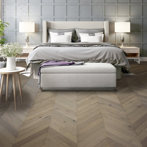 Antique Beige Burbon combines the best of ultra-modern design and classic, homely warmth. The oak parquet flooring is installed in a Chevron pattern, complementing clean geometric or minimalistic interiors. Plus, it’s easy to clean and highly durable. With a lifetime residential warrantee, rest assured your floor will be spick-and-span for decades to come! Yet the floor itself really comes into its own when showcased. This can be achieved magnificently with floor to ceiling windows or mirrors and polychromatic earth-colored décor.