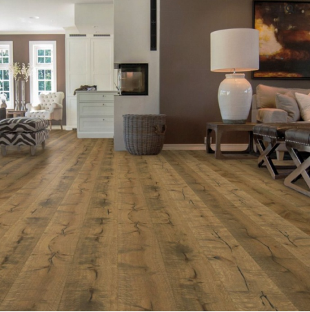 On the other end of the tonal spectrum, whitewashed looks are also making a big comeback as part of the eco-chic interior trend. These floors create a peaceful, beachside-style ambiance – well-known for being a staple of the classic Californian look. The lighter wood hues can add a bright, cheerful tone to either rustic spaces or paired back modern interiors. White Willow from Gerbur Nature provides a beautiful but easy to care for LVT option, with subtle and creamy tones and textures.