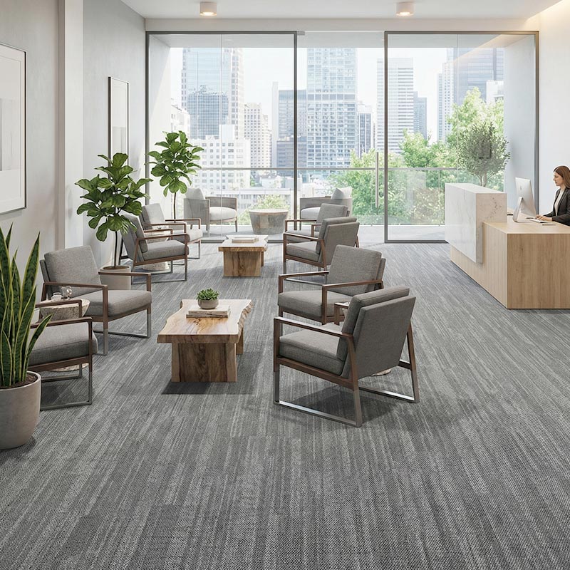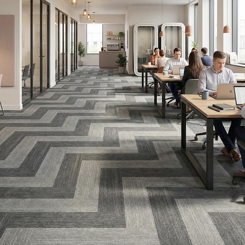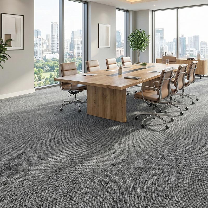 Autumn 06 presents a deep charcoal tone with structured texture that creates strong visual definition and confident spatial zoning within professional interiors. Its darker profile enhances contrast while helping conceal day-to-day wear in high-use areas.