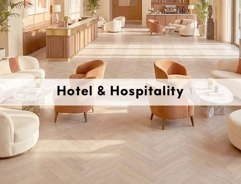 Hotels, Restaurants & Hospitality Venues: Elevate guest spaces with engineered wood floors from Royal Parquet, SwissHardwood, or ECO Wood, offering timeless elegance and warmth. For high-traffic public areas, vinyl and SPC floors provide the perfect balance of design and performance.