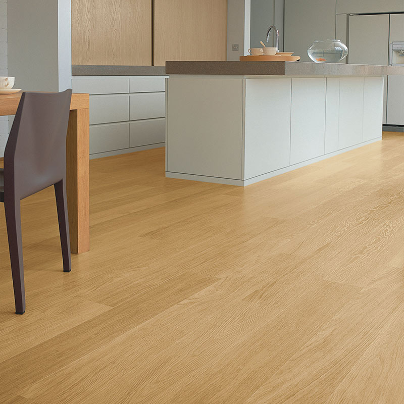 Quick-Step Eligna Natural Varnished Oak EL896 delivers a clean, modern oak floor with a natural varnished tone that works beautifully across UAE homes and commercial interiors. Eligna’s signature no-groove, no-bevel plank design creates a smooth, streamlined look—ideal for open-plan spaces, bedrooms, offices, and retail fit-outs where you want a neat, uninterrupted finish. Built for everyday practicality, EL896 combines Scratch Guard protection with HydroSeal water-resistant technology that helps prevent surface moisture from penetrating, making cleaning easier.