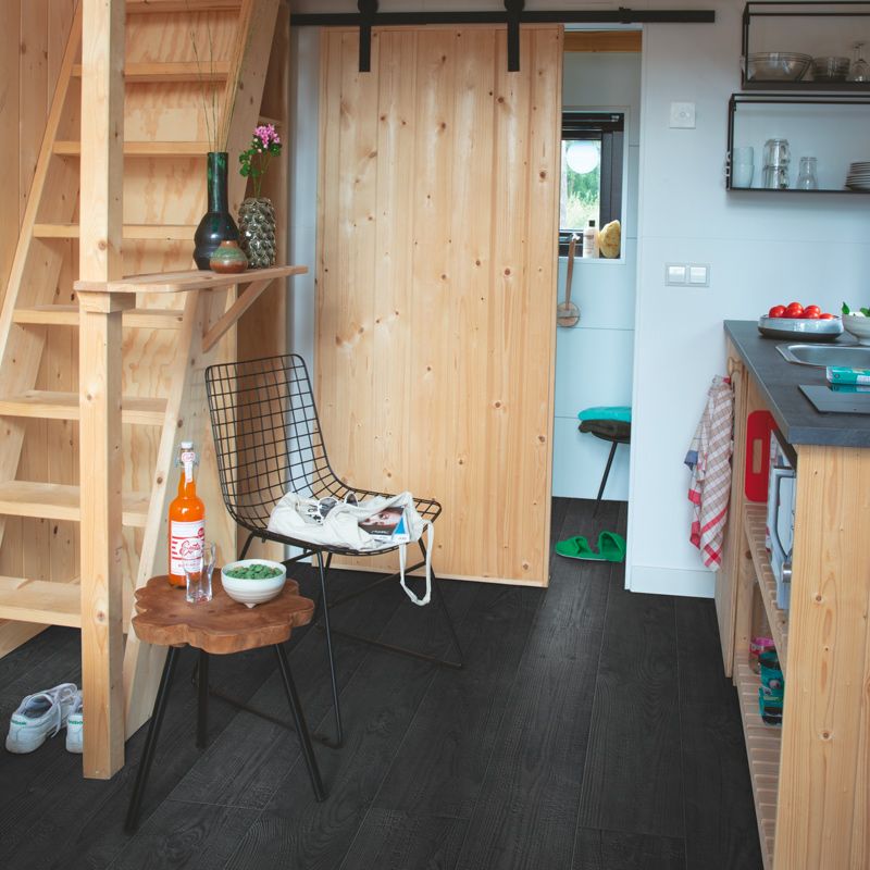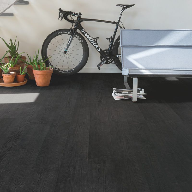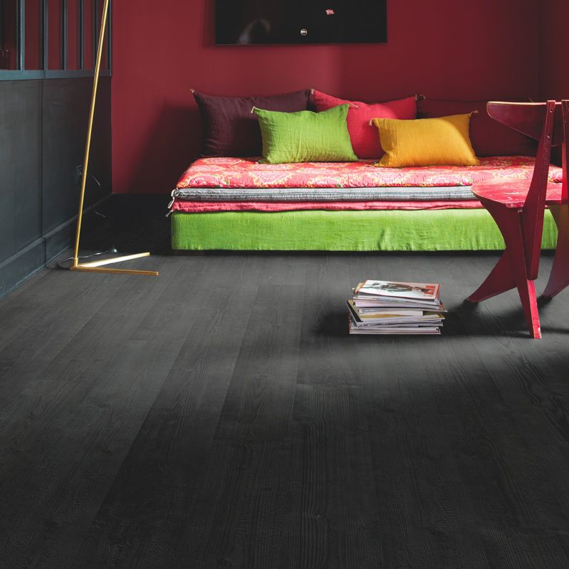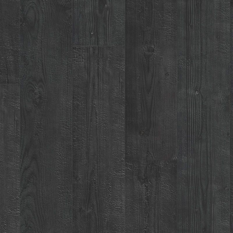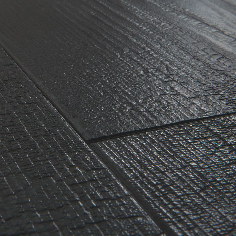 Burned Planks offers a dramatic, dark wood styling with a burnt oak finish that adds striking contrast and rustic elegance. Its deep black tones are enhanced by genuine bevel grooves and a richly textured surface, reflecting craftsmanship along with character. With HydroSeal waterproof protection and a durable Scratch Guard layer, it holds up to spills, foot traffic, and wear — all while anchoring your interior in bold design.