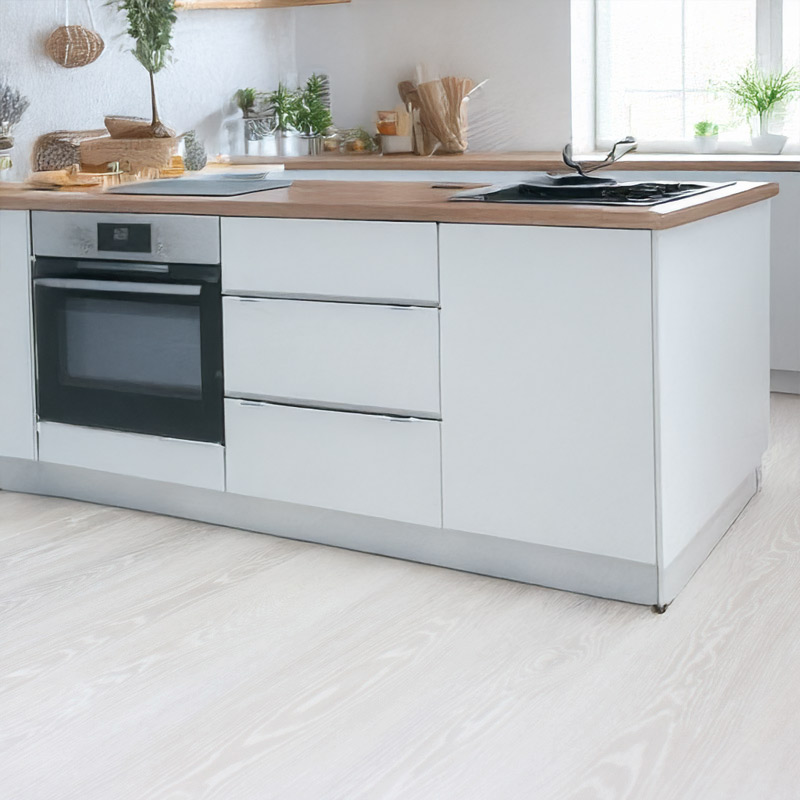 Brighten your space with Amsterdam White, a refreshing flooring choice that makes rooms look larger and lighter. Designed for modern interiors, this SPC floor pairs a clean, elegant design with long-lasting strength. It’s waterproof, stain-resistant, and easy to install — ideal for homes, studios, or offices seeking a fresh, airy look with low maintenance.
