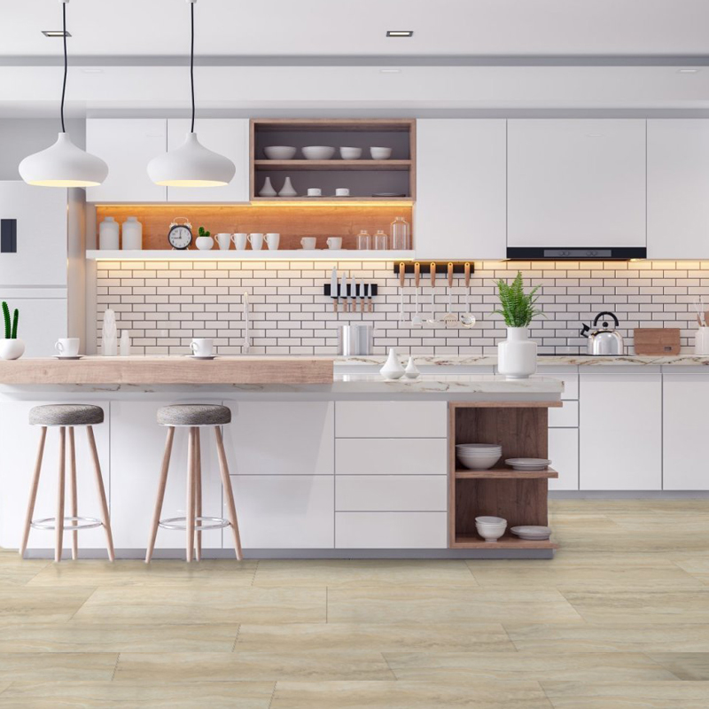 Limestone from Gerbür Art Mineral captures the natural elegance of stone with a versatile, soft beige tone. Its delicate surface texture and mineral-inspired pattern create a calm, grounded aesthetic, complementing both contemporary and classic interiors. Ideal for kitchens, living spaces, or commercial areas, this vinyl floor combines natural stone charm with durability, water resistance, and effortless maintenance, delivering timeless appeal.