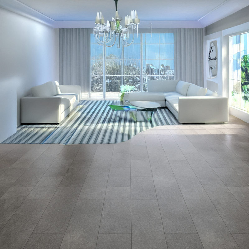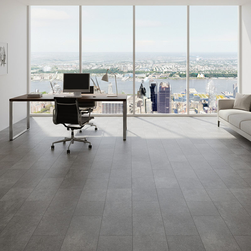 Cantera 46930 brings an elegant mid-grey tone with subtle concrete-like variation, offering a modern, industrial aesthetic that suits both residential and commercial interiors. The softly textured surface gives depth and realism, while its neutral shade harmonizes effortlessly with wood accents and contemporary furnishings.