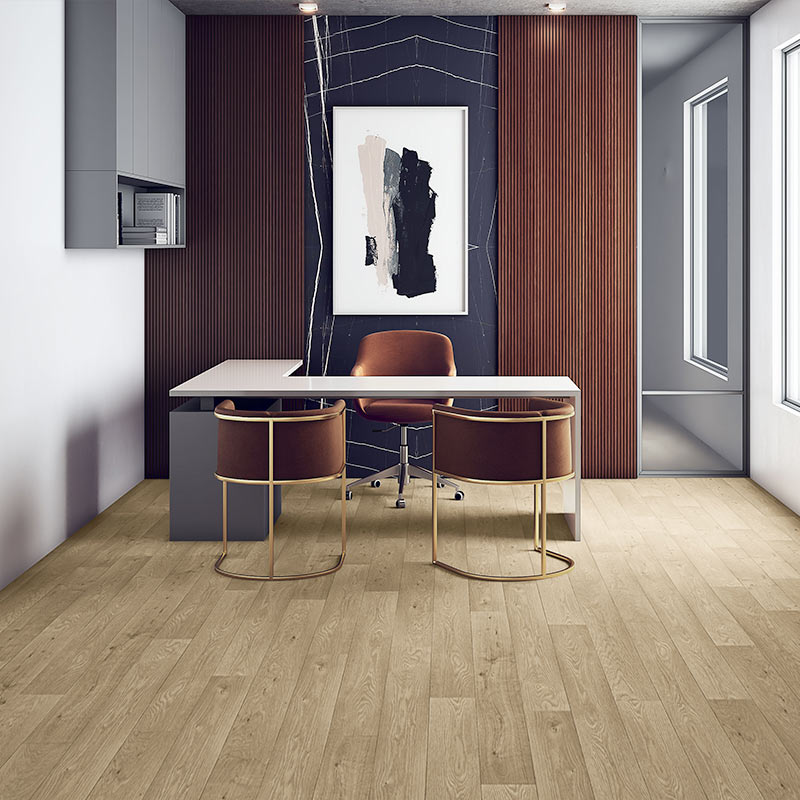 Jackson M50 presents a soft natural oak tone with subtle grain movement, creating a bright and inviting wood-effect floor for commercial environments. Suitable for offices, classrooms, retail areas, and hospitality spaces, its gentle warmth enhances comfort while maintaining a clean, modern appearance. Durable and easy to maintain, Jackson M50 is a versatile choice for high-traffic interiors.