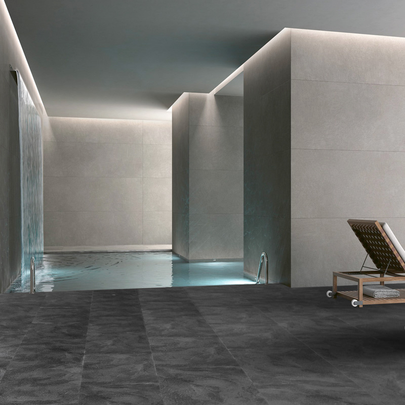 Ardesia offers deep charcoal tones with rich stone texture for a bold, contemporary statement. Its dark, sophisticated finish adds contrast and modern edge, perfect for stylish, high-impact interiors.