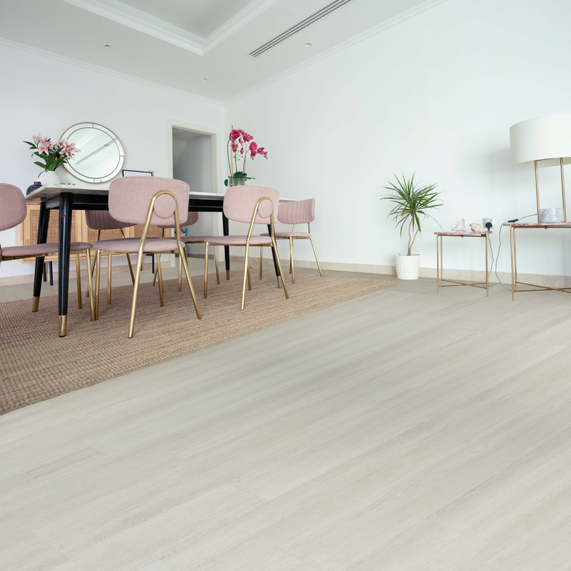White Pepper embodies understated luxury with its soft white-grey tones and minimalist woodgrain effect. Ideal for bright, contemporary interiors, it offers waterproof performance and long-lasting elegance for sophisticated living.