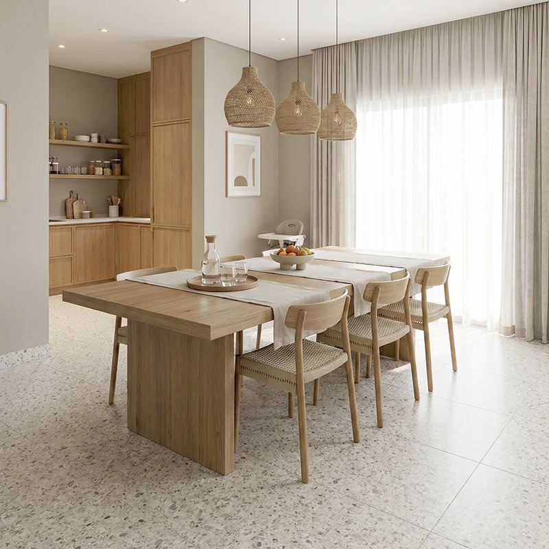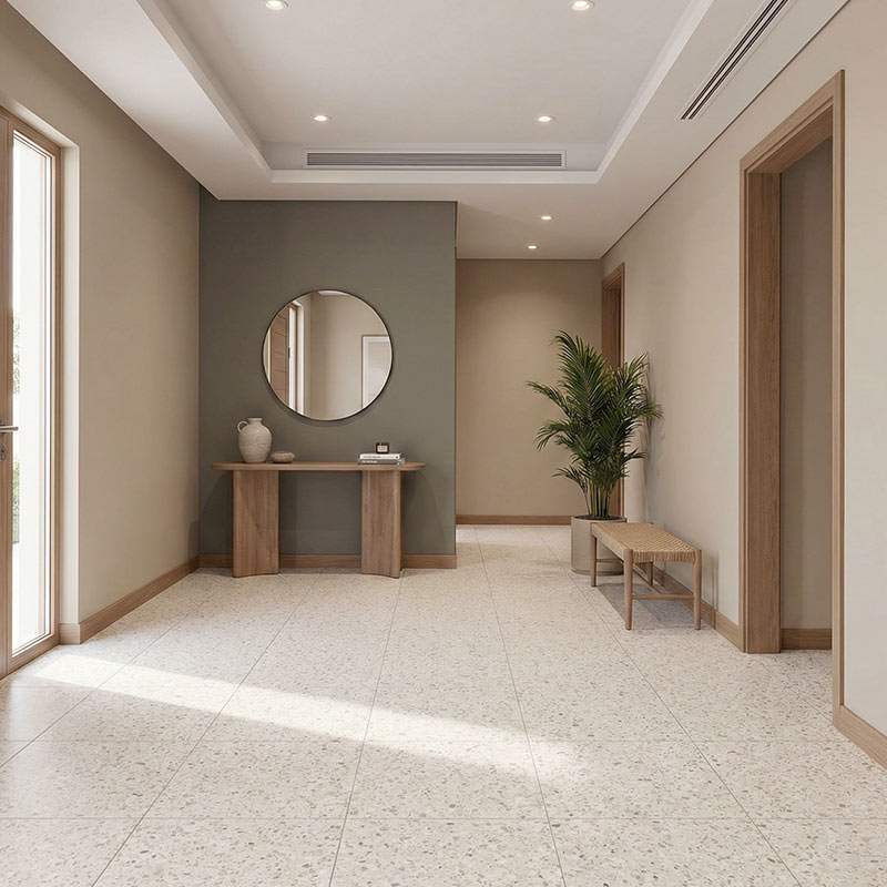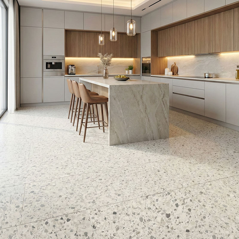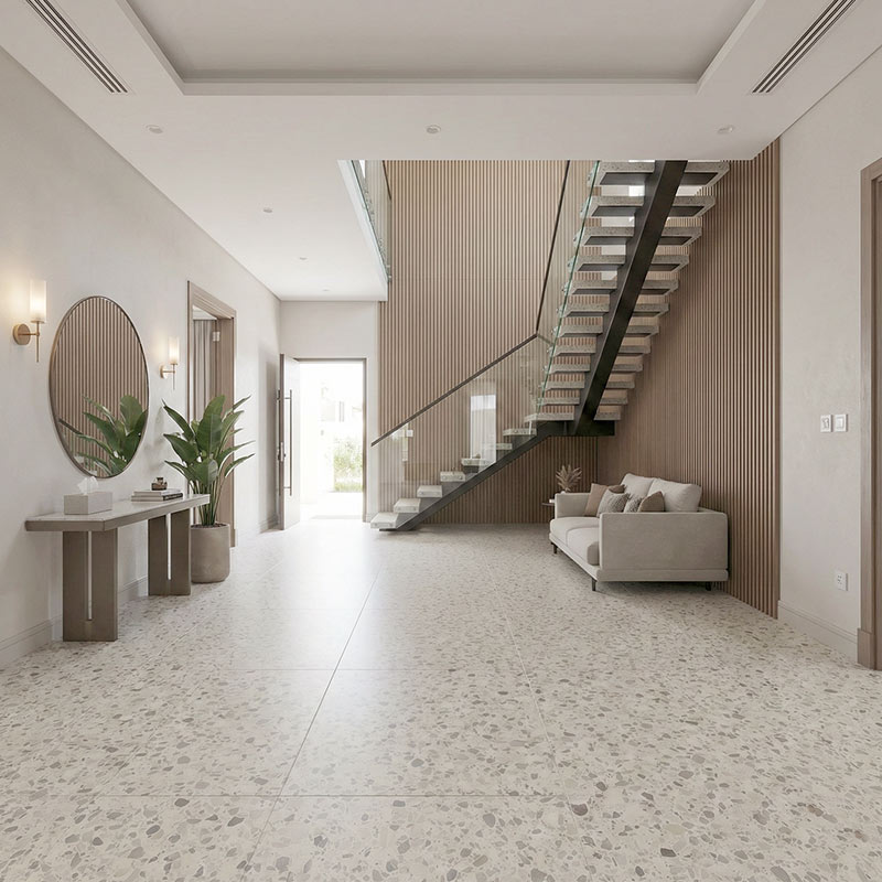 Bolzano 46112 is a modern stone-effect flooring design that delivers a clean architectural finish with the comfort of luxury vinyl. In tile format (856 × 428 mm, total thickness 6 mm), it creates a spacious, seamless look with the benefits of LayRed’s rigid core stability and integrated underlay comfort. Its waterproof click installation makes it ideal for kitchens, lounges, and stylish commercial spaces across the UAE.