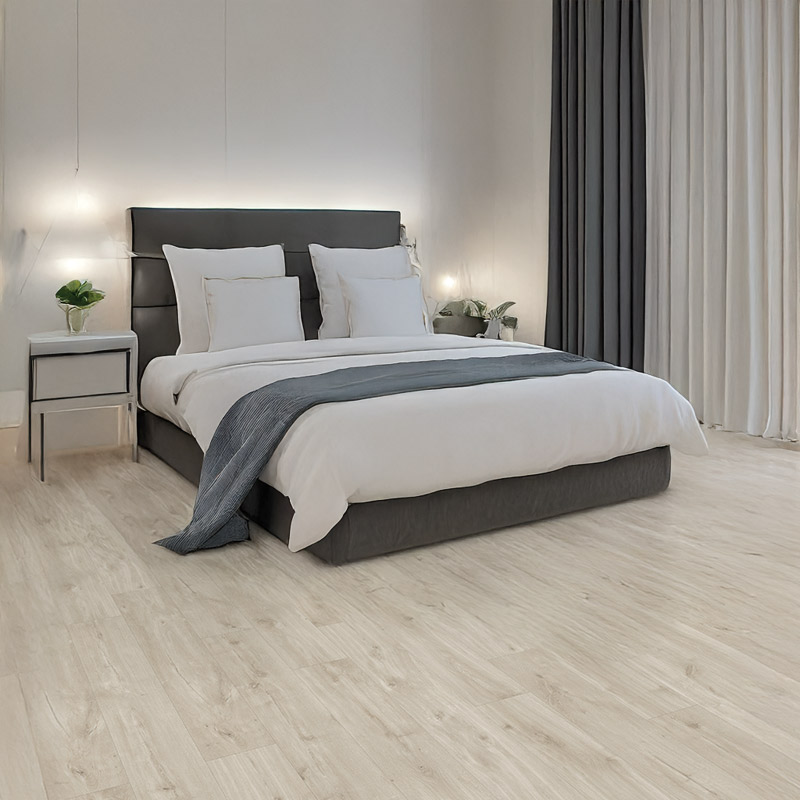 Canyon Oak Beige captures the natural warmth and gentle charm of oak in a light, contemporary tone. With authentic grain textures and soft detailing, this refined vinyl flooring creates a bright and inviting atmosphere perfect for modern homes. Crafted for comfort and practicality, it features a waterproof surface, durable wear layer, and soft underfoot feel—ideal for every room from bedrooms to kitchens