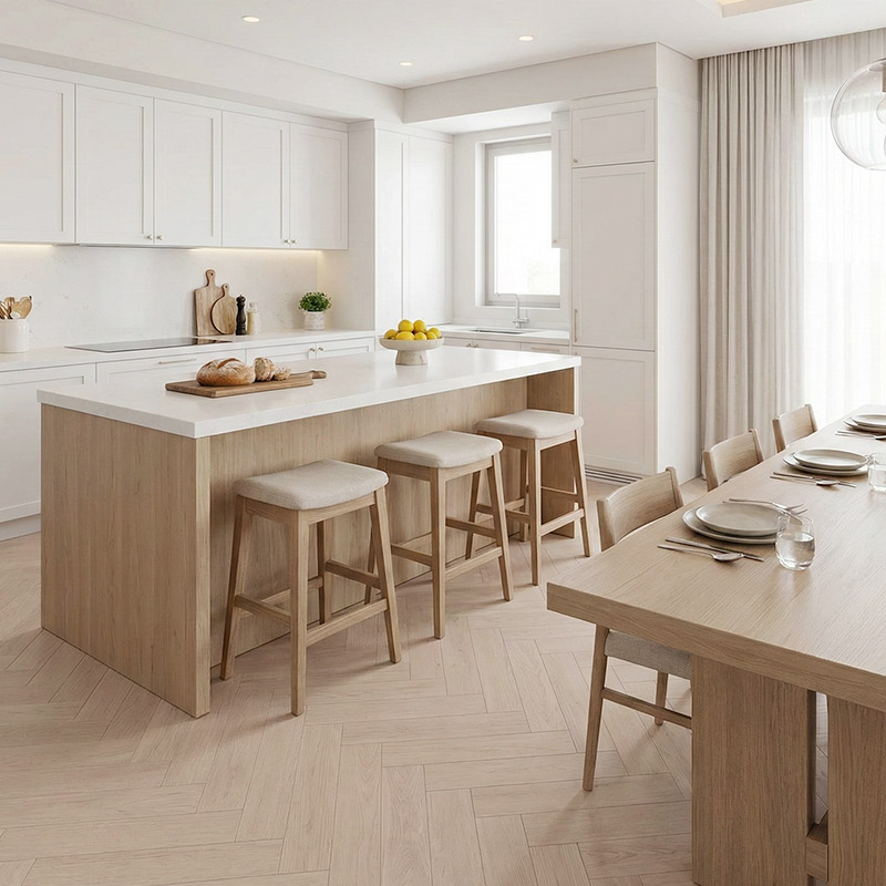The hybrid construction supports seamless transitions between dry and lifestyle zones, allowing designers to maintain a consistent wood aesthetic across open‑plan layouts while benefiting from enhanced moisture resistance.