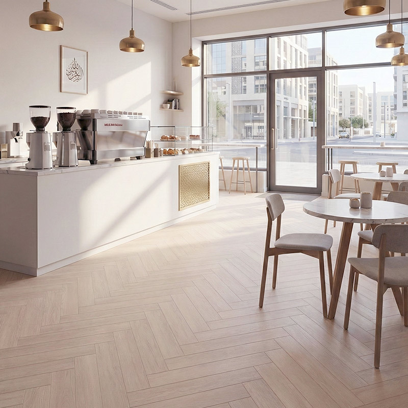 Arranged in a classic herringbone pattern, this colour introduces architectural rhythm and visual depth, making it suitable for refined residential interiors and high-traffic commercial spaces.