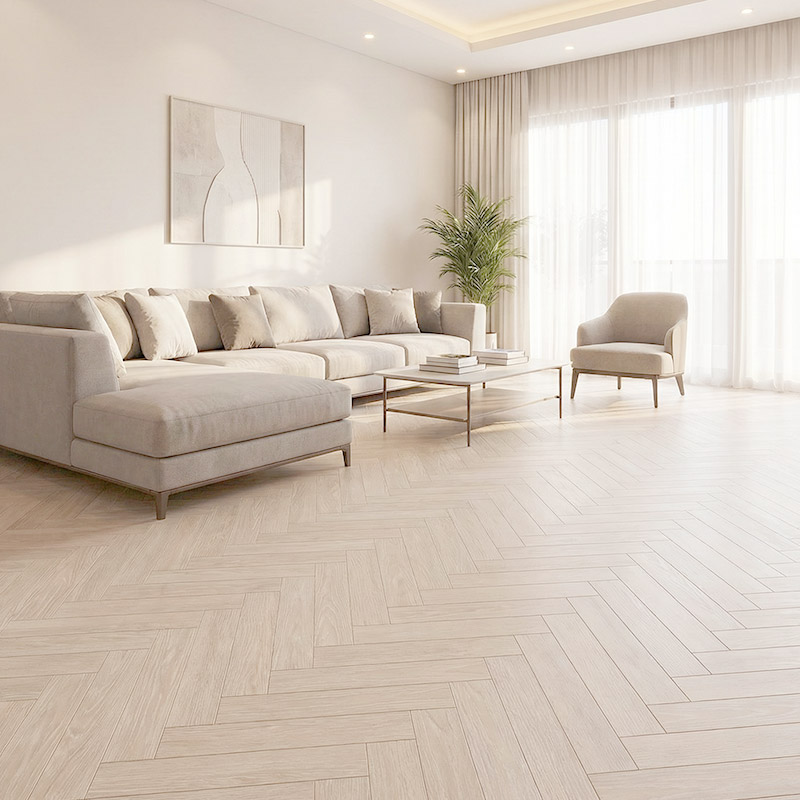 Arranged in a classic herringbone pattern, this colour introduces architectural rhythm and visual depth, making it suitable for refined residential interiors and high-traffic commercial spaces.