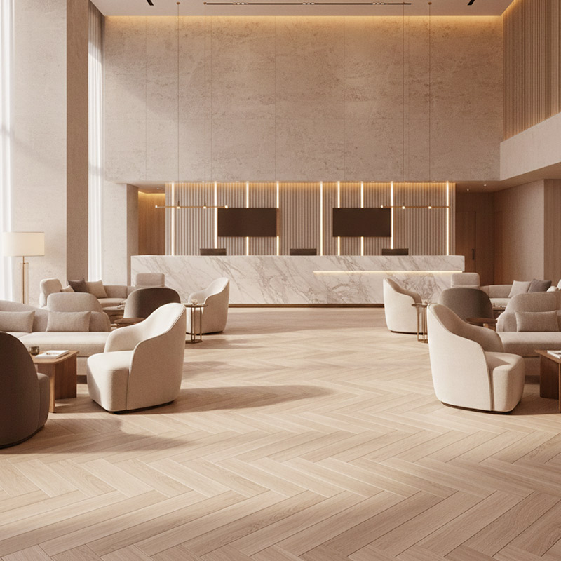 Boa Hybrid Herringbone is designed for interiors where visual continuity, pattern sophistication, and performance must coexist. The herringbone pattern introduces rhythm and architectural character, elevating both contemporary and modern‑classic spaces.