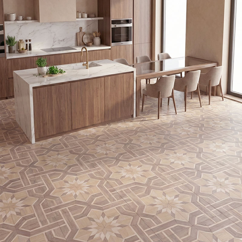 • Decorative parquet tile crafted from Walnut, Birch & Oak