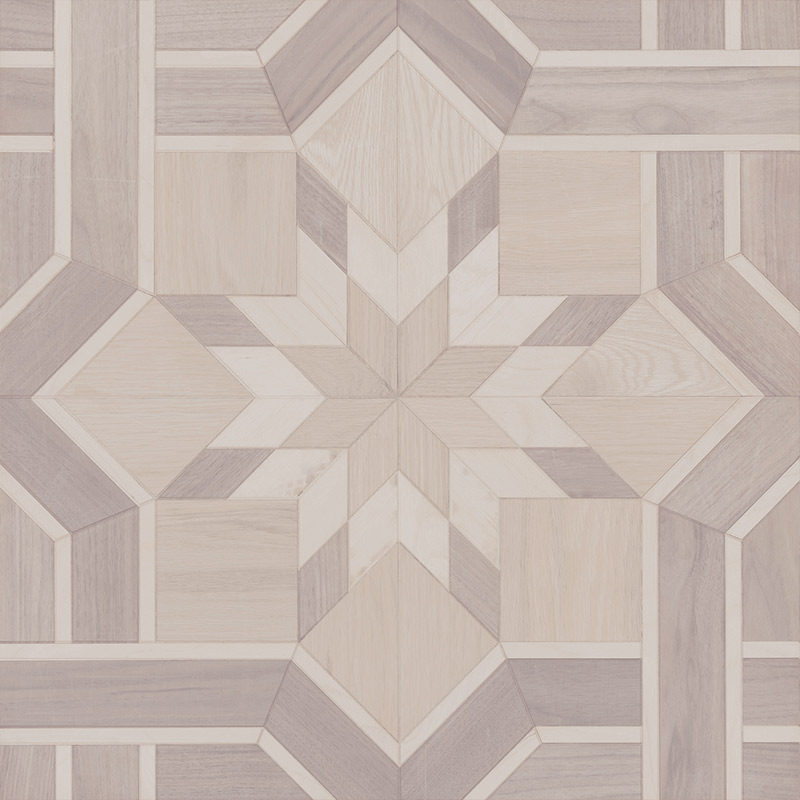 Steel introduces a cool contemporary grey oak tone that strengthens the structural clarity of Art Mosaic’s geometry. The crisp palette sharpens the multi-wood transitions, giving the artistic layout a more architectural presence. Steel offers a modern reinterpretation of the mosaic concept—perfect for interiors favouring clean lines and understated sophistication.