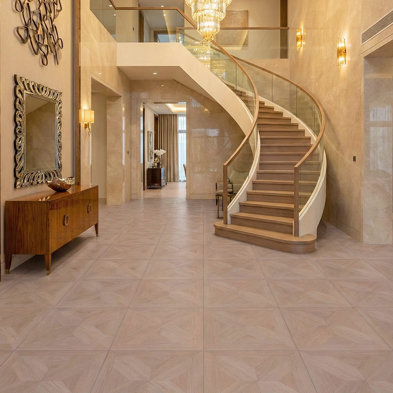 • Elegant arrow-line parquet geometry
