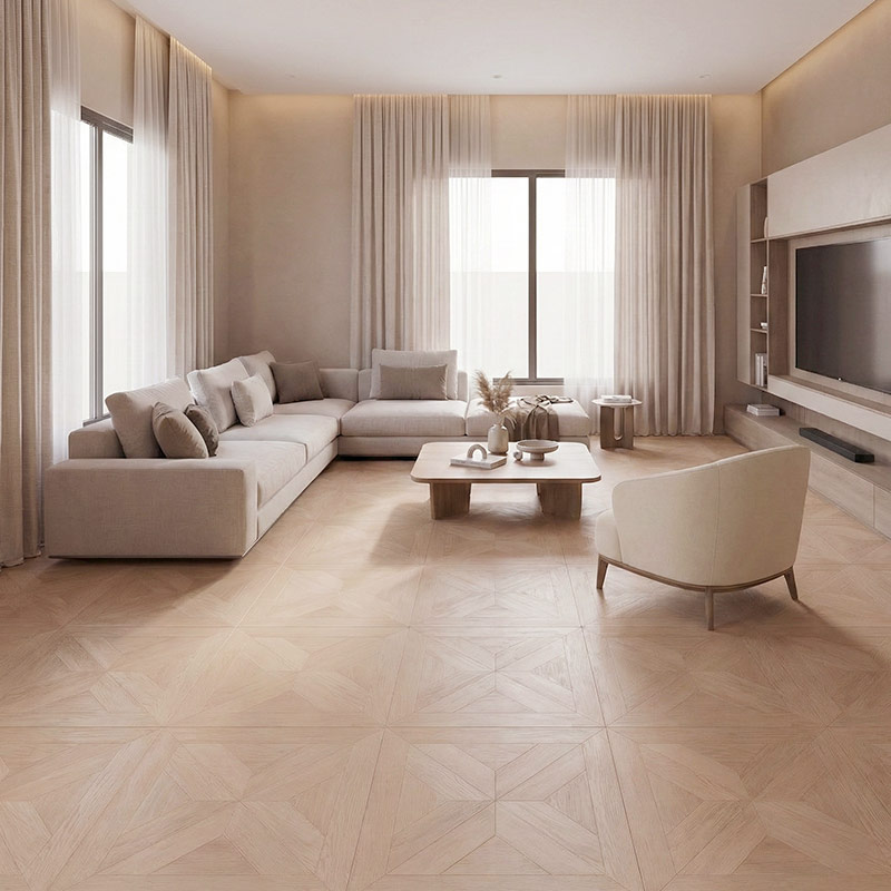 • Elegant arrow-line parquet geometry