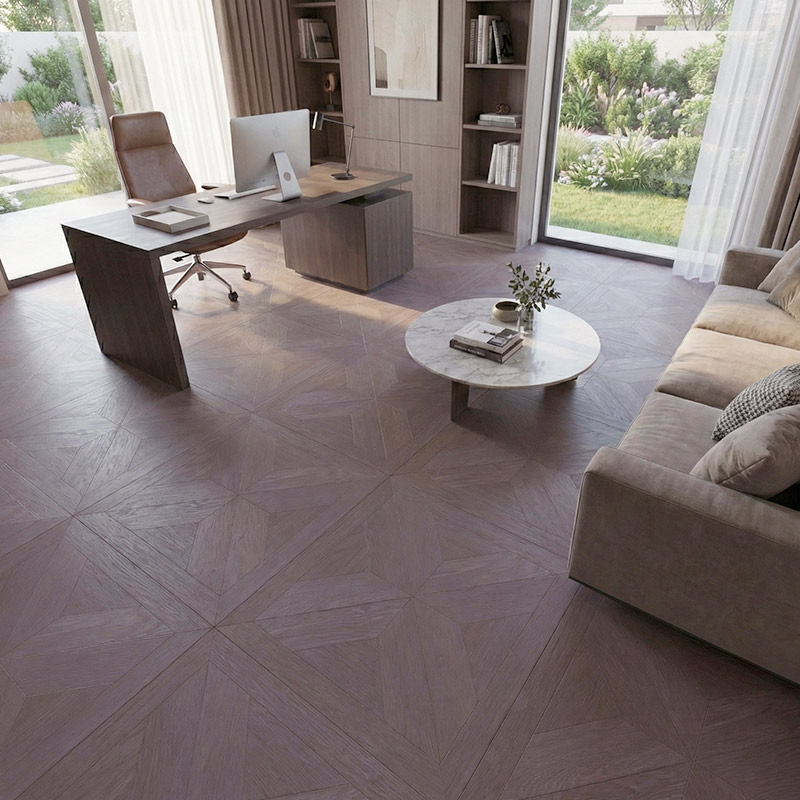 Colorado adds boldness to the Gilded Lines pattern with a deep dark oak tone that sharpens the geometric design. The colour’s strong presence creates a sense of luxury and defined structure, making it suitable for interiors that embrace confident, high-contrast design. Subtle grain visibility softens the tone just enough to maintain warmth and sophistication.