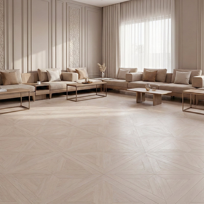 • Elegant arrow-line parquet geometry