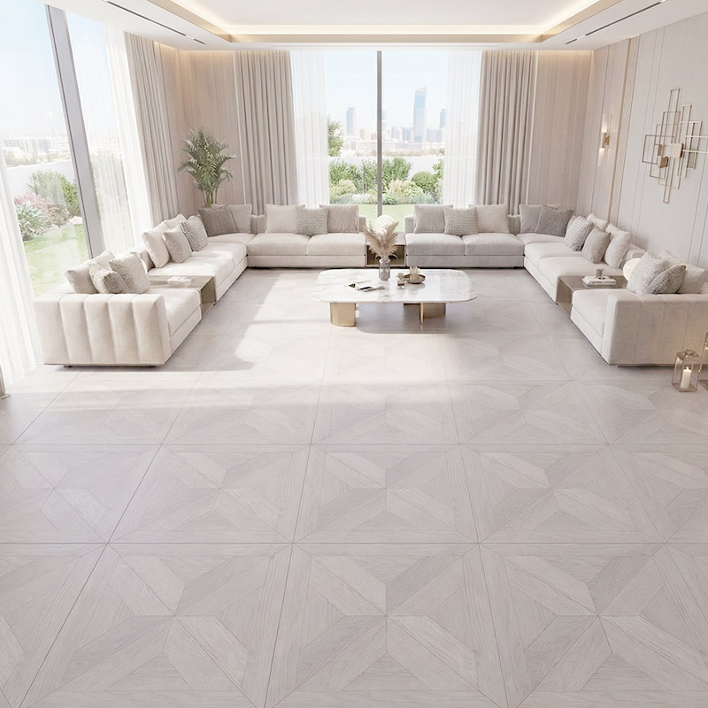 • Elegant arrow-line parquet geometry
