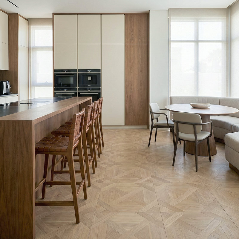 • Creates a balanced parquet look with calm symmetry