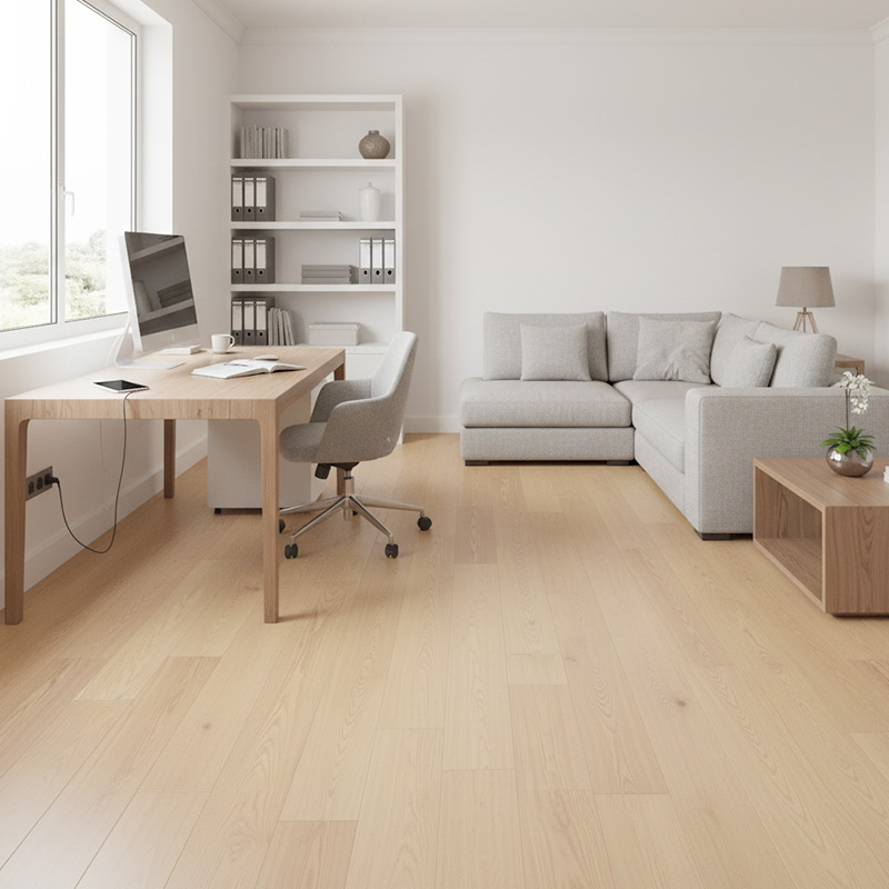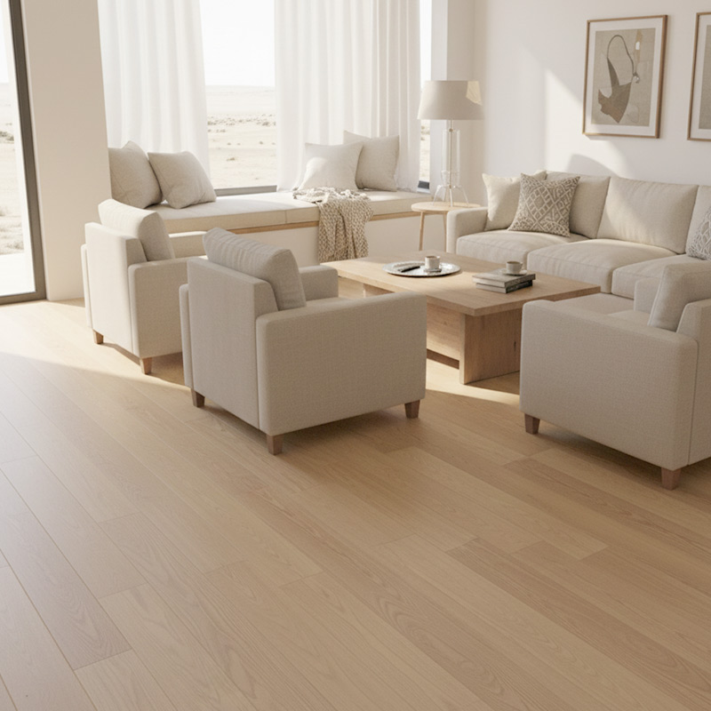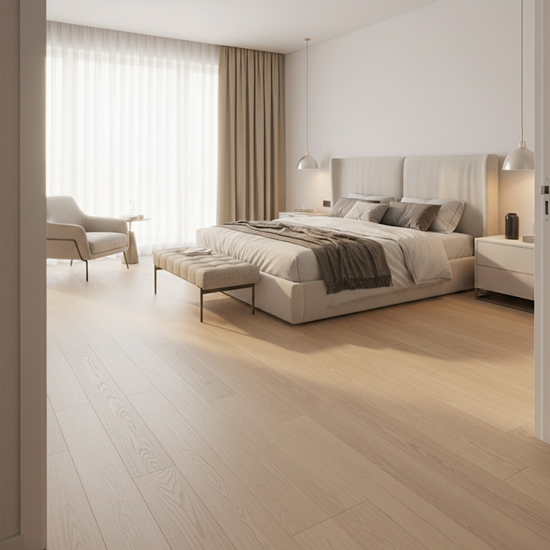 Butterscotch presents a refined French Oak tone designed for interiors that value clarity, proportion, and material authenticity. The Supreme-grade selection minimises knots and visual noise, allowing the grain to read as calm and controlled. Across larger spaces, the wide plank format supports a continuous, architectural flow—helping the floor complement the room rather than dominate it.