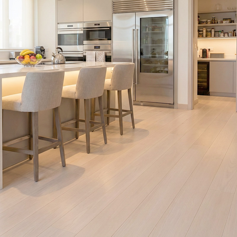 In the Bernera Supreme range, Mist presents a refined French Oak tone designed for interiors that value clarity, proportion, and material authenticity. The Supreme-grade selection minimises knots and visual noise, allowing the grain to read as calm and controlled. Across larger spaces, the wide plank format supports a continuous, architectural flow—helping the floor complement the room rather than dominate it.