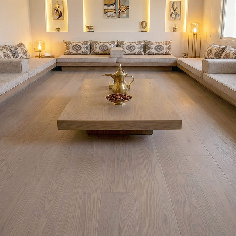 Manufactured in engineered multi-layer construction for stability, Bernera Supreme performs reliably in the UAE’s climate and is suitable for high-end residential and commercial environments. The lacquered finish is designed to protect the surface while preserving a natural, premium oak expression that ages gracefully over time.