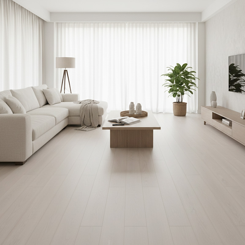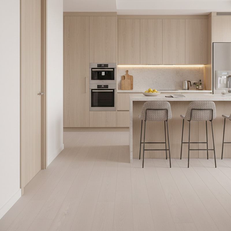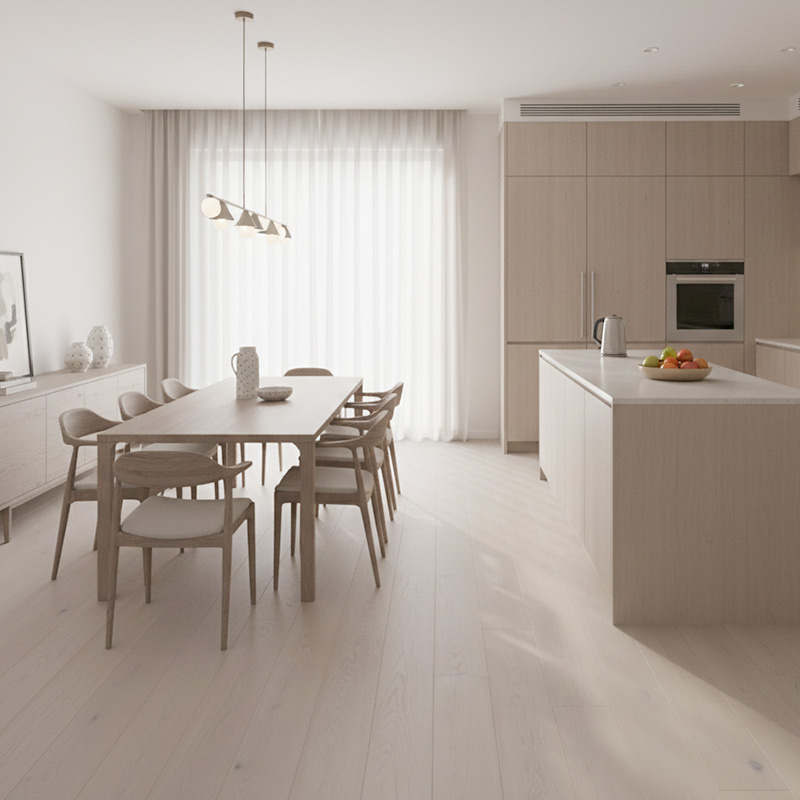 Bernera Supreme presents a carefully composed palette of contemporary French Oak tones, developed to enhance the natural elegance of its wide-plank format. The collection moves seamlessly across light neutral shades, soft architectural browns, Nordic-inspired hues, and understated refined greys — each selected to maintain tonal harmony and visual calm.