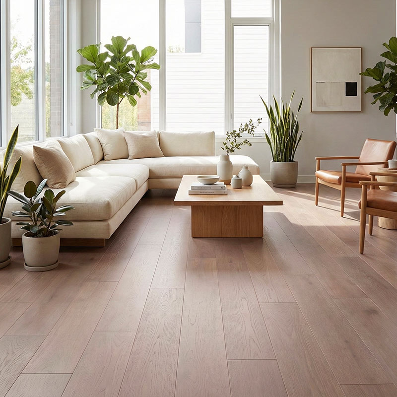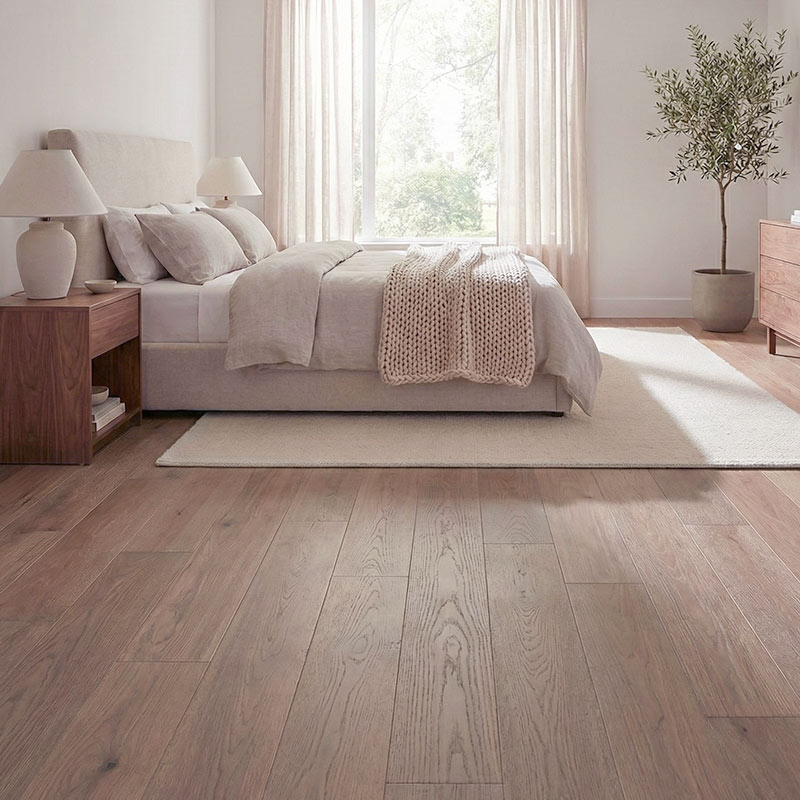 Basil Cambridge Classic features a gently faded brown tone that suggests naturally aged oak without feeling rustic. The 240mm wide plank spreads this soft colour evenly, giving spaces a calm, settled atmosphere in both modern and classic settings. Ultra-matt finishing and AB-grade oak grain keep the floor looking refined and easy to style.