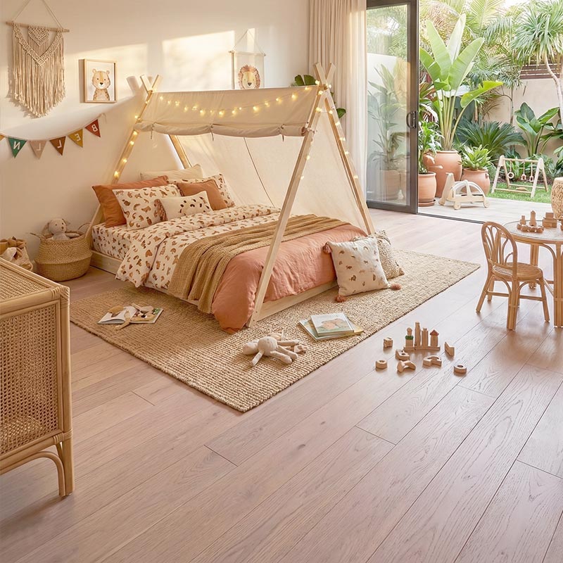 Cambridge Classic offers a curated selection of modern, natural, warm, and contemporary oak tones designed to complement wide-plank visuals. Shades include light neutrals, soft browns, Nordic-inspired hues, and refined greys, each crafted to highlight the broad grain flow without overpowering the space.