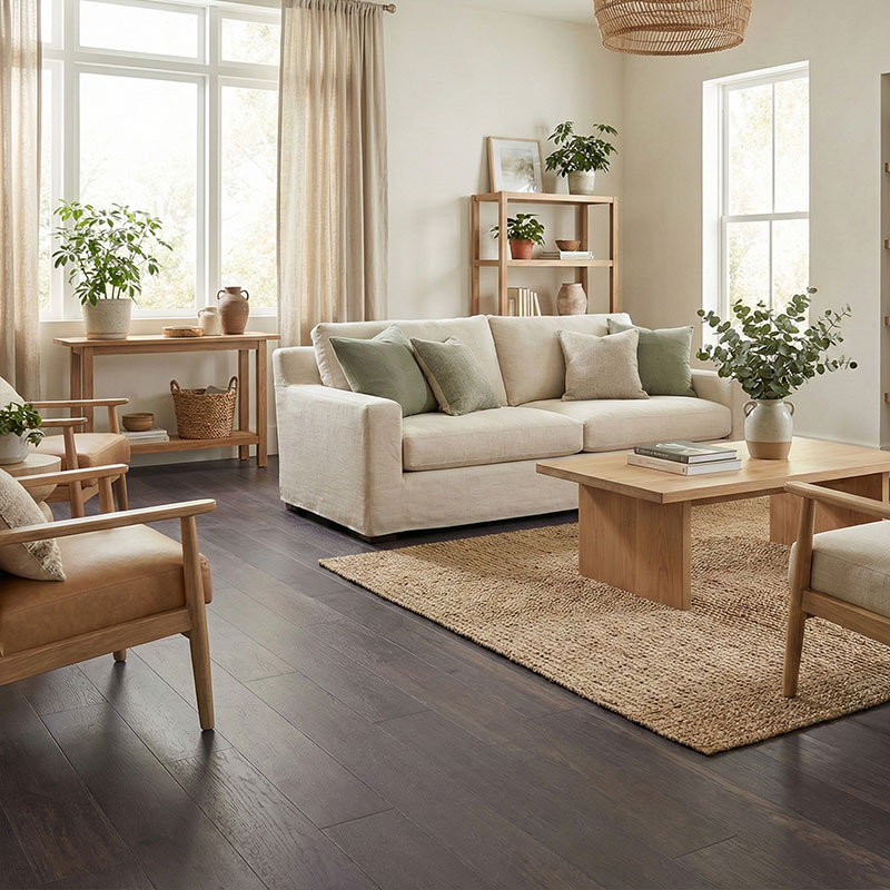 Real Hardwood Surface: Natural grain, warmth, and authenticity, every plank is unique.