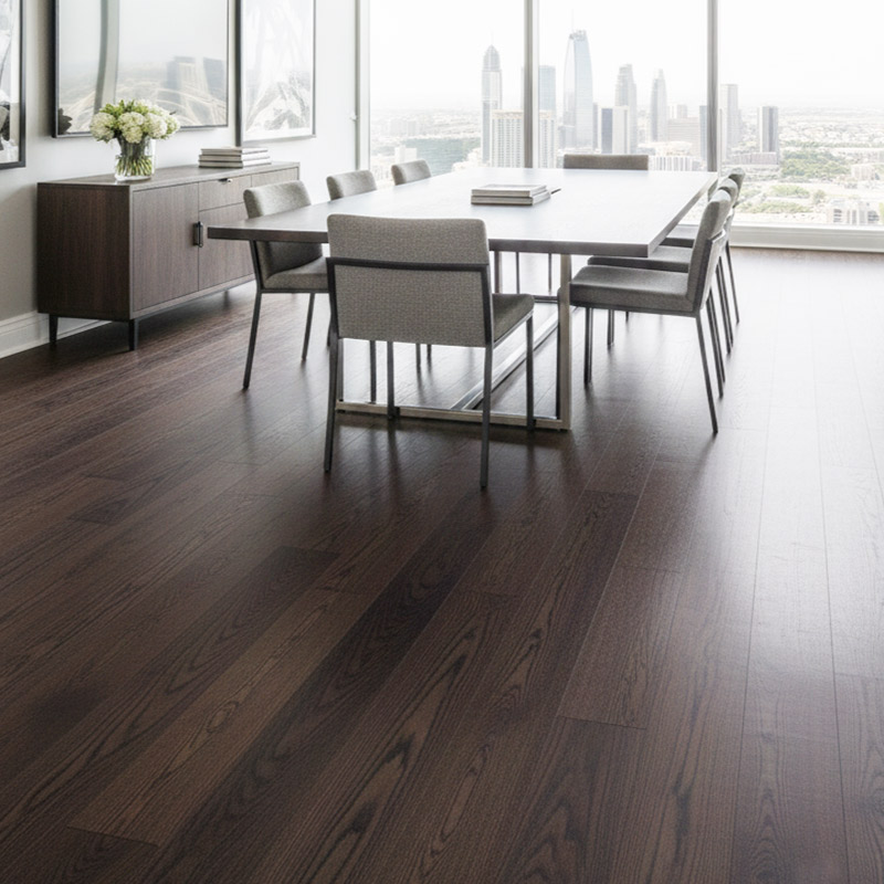 Black in the Decorum Collection presents a deep espresso tone softened by the wider 189 mm plank width, giving it a grounded and warm character rather than a stark dark look. The natural oil, matt finish highlights subtle brown undertones and grain movement, offering a sophisticated aesthetic suited to stylish living areas and boutique spaces.