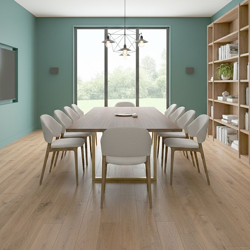 Castle Brown in the Decorum Collection brings a grounded, earthy mid-brown oak tone that feels natural, homely, and comfortably warm. The wide 189 mm boards accentuate its depth, while the natural oil, matt finish adds richness and subtle grain highlights. This colour creates a stable, inviting atmosphere ideal for family spaces and warmly styled commercial interiors.