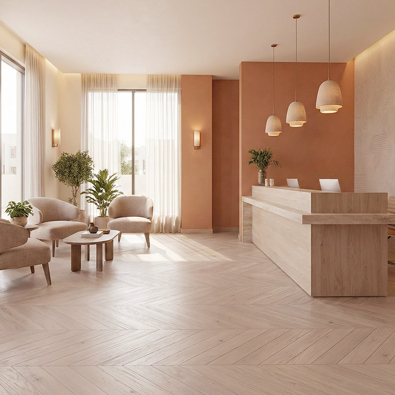Suitable for both residential and commercial spaces, Royal Parquet – Chevron Classic is backed by a 25-year residential and 10-year commercial warranty, ensuring confidence and durability over time.