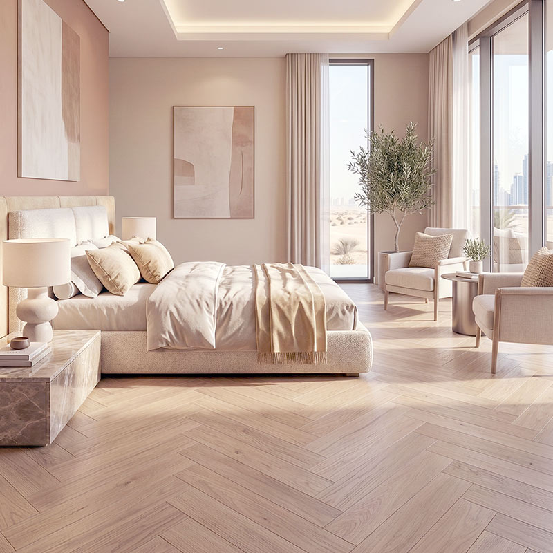 Floorworld offers an end-to-end flooring solution for Royal Parquet – Chevron, from expert product selection to professional glue-down installation and long-term aftercare. Our specialists guide you in choosing the ideal European oak grade, chevron layout, finish, and board dimensions, ensuring every floor is installed with precision, stability, and exceptional craftsmanship—perfectly suited to UAE conditions.
