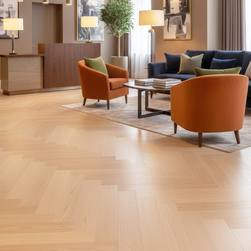 Butterscotch Herringbone delivers a cheerful golden oak tone that brings uplifting warmth to herringbone floors. Its soft colour brightens interiors without overpowering them, making it an excellent choice for family homes and relaxed contemporary spaces. The ultra-matt lacquer keeps the golden tone feeling natural and refined.