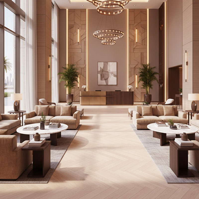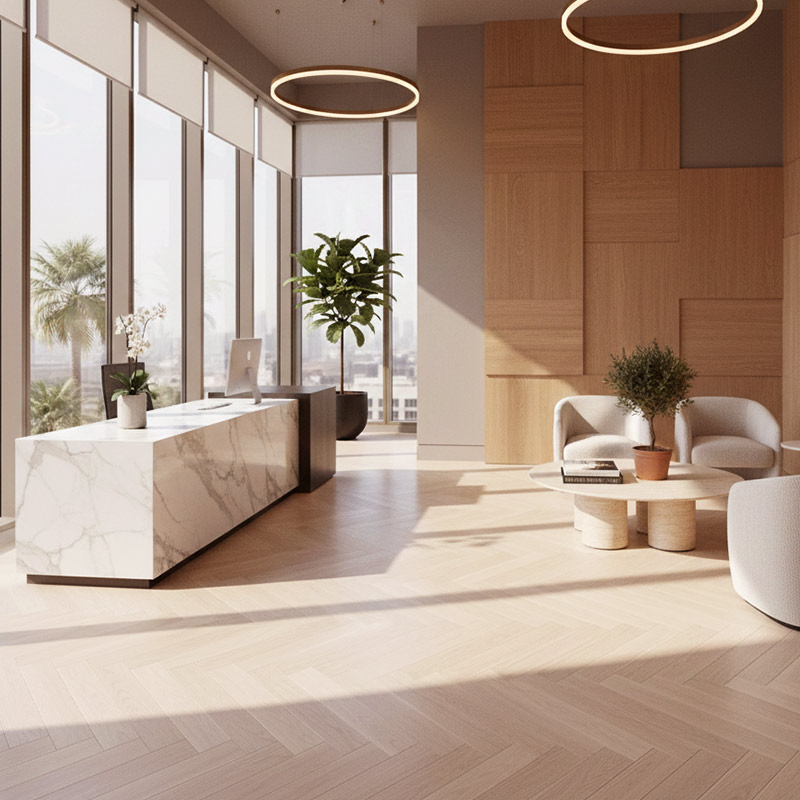 Floorworld offers an end-to-end flooring solution for Royal Parquet – Chevron Classic, from expert product selection to professional glue-down installation and long-term aftercare. Our specialists guide you in choosing the ideal European oak grade, chevron layout, finish, and board dimensions, ensuring every floor is installed with precision, stability, and exceptional craftsmanship—perfectly suited to UAE conditions.