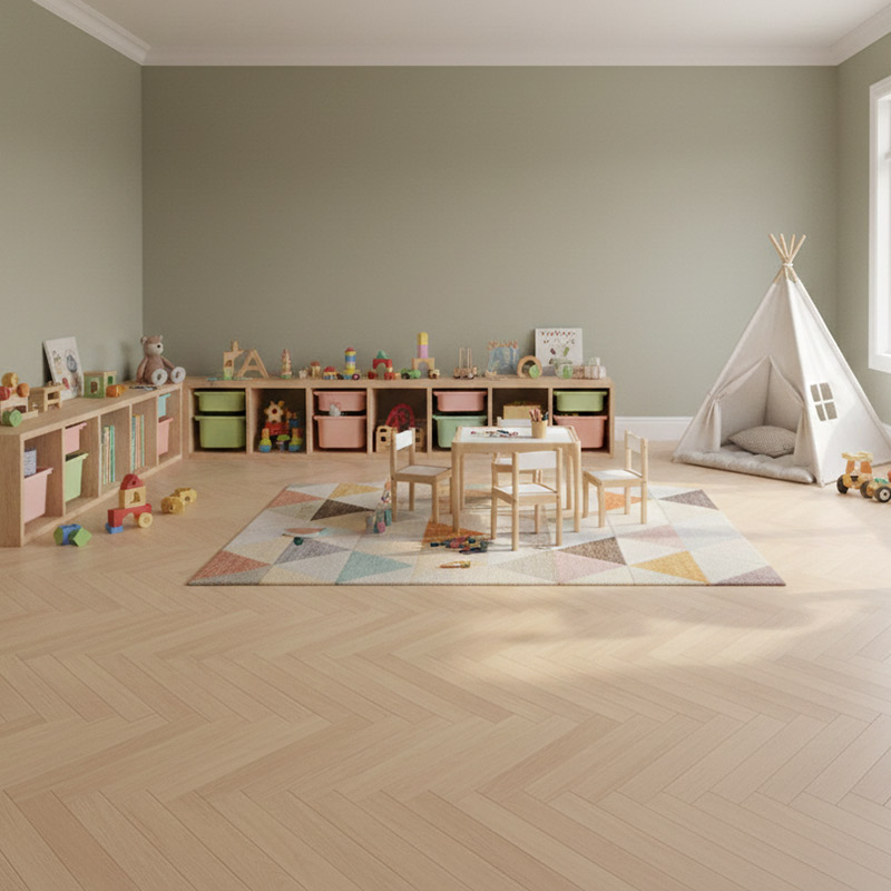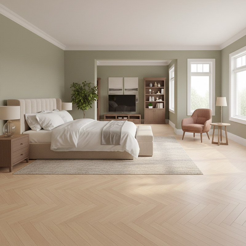 Frosted Oak Herringbone – Soft Pale Oak with Clean, Modern Clarity