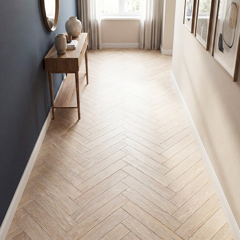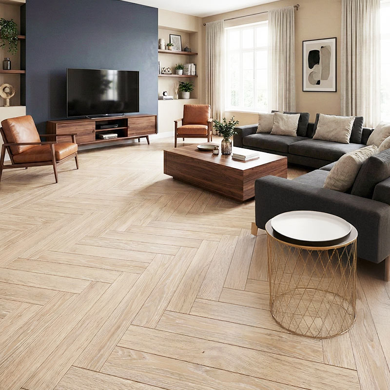 Nordic Driftwood Herringbone brings a weathered beige-grey tone inspired by Scandinavian interiors. Its soft, natural colour provides a relaxed and understated look perfect for calm living spaces. The ultra-matt lacquer maintains a smooth feel while offering protective durability.