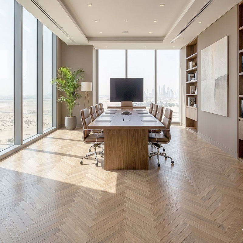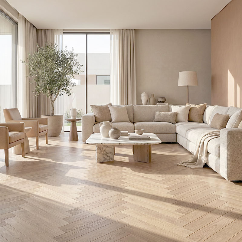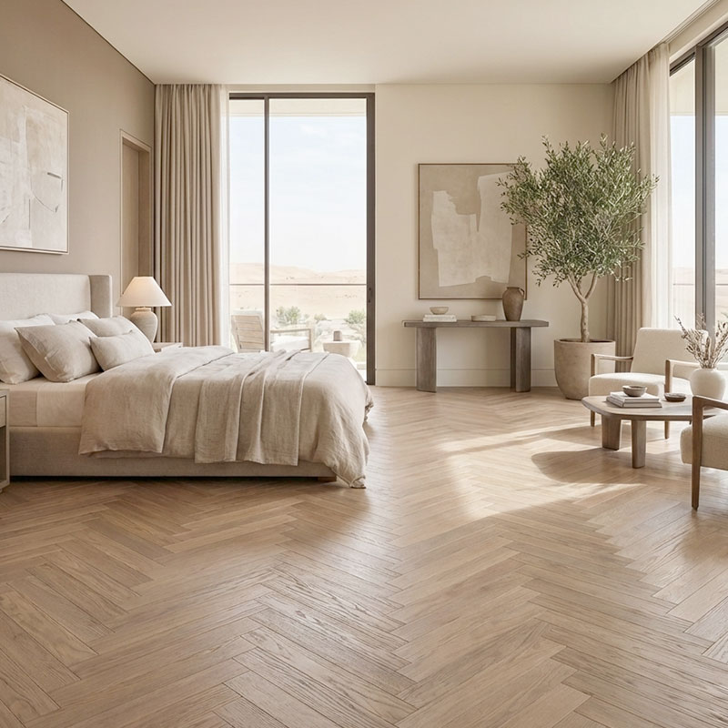 Floorworld offers an end-to-end flooring solution for Royal Parquet – Chevron Classic, from expert product selection to professional glue-down installation and long-term aftercare. Our specialists guide you in choosing the ideal European oak grade, chevron layout, finish, and board dimensions, ensuring every floor is installed with precision, stability, and exceptional craftsmanship—perfectly suited to UAE conditions.