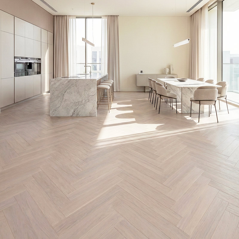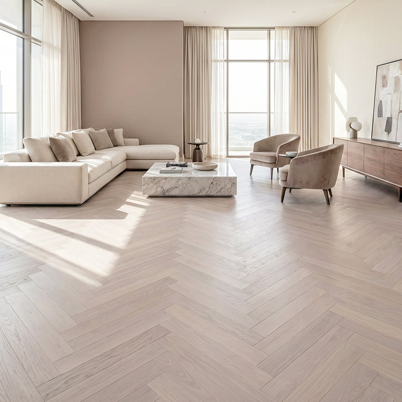 Floorworld offers an end-to-end flooring solution for Royal Parquet – Chevron Classic, from expert product selection to professional glue-down installation and long-term aftercare. Our specialists guide you in choosing the ideal European oak grade, chevron layout, finish, and board dimensions, ensuring every floor is installed with precision, stability, and exceptional craftsmanship—perfectly suited to UAE conditions.