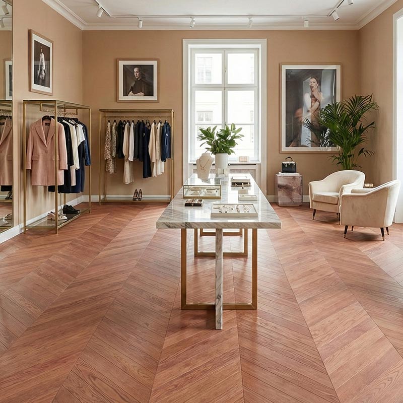 Swiss Hardwoods is known for its engineering quality, environmental responsibility and durability. The lacquer finish protects against daily wear while keeping the natural look of the wood. Combined with Floorworld’s expert installation and warranty support, it becomes one of the most reliable chevron options in the UAE market.