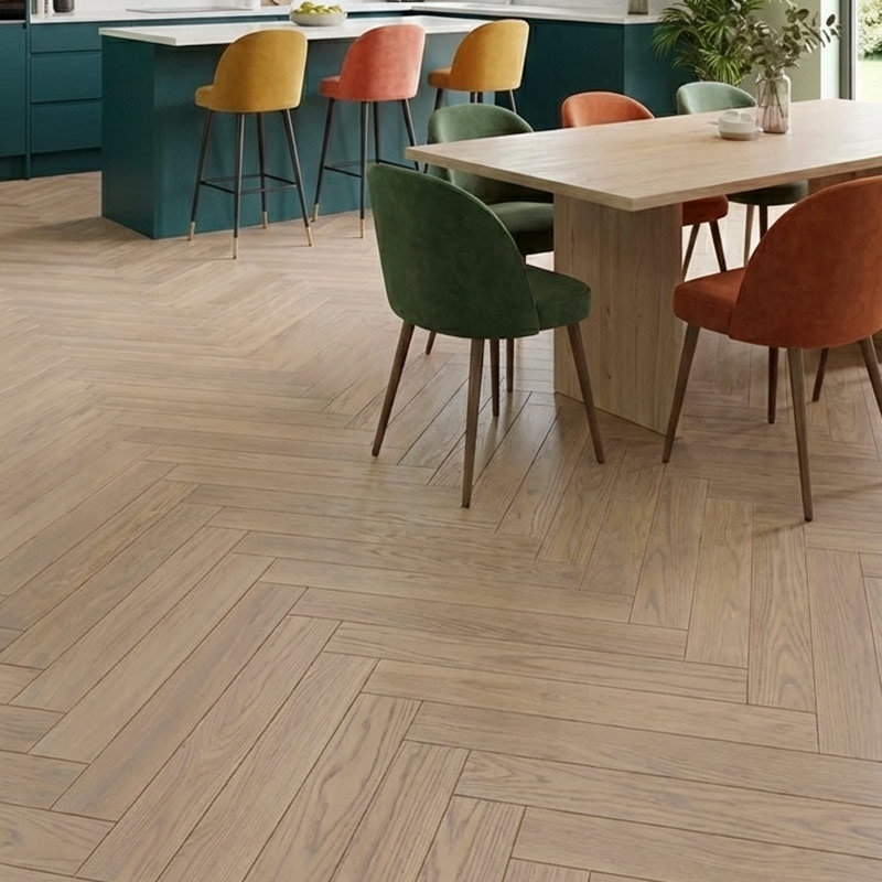Biscuit - Eternal Herringbone adds a soft light brown tone to the collection, with golden hints that create a warm and inviting base. The colour feels comforting without being heavy, making it a great choice for family lounges, open-plan living areas, and bedrooms. The natural oil finish gently enriches the shade, emphasising the oak’s grain in a subtle, relaxed way.