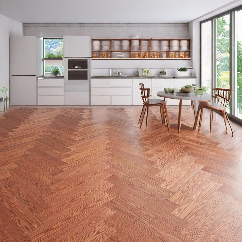Mahogany - Eternal Herringbone introduces a warm, reddish-brown hue that instantly gives interiors a sense of classic character. The natural oil finish enriches the tone, highlighting the warmth and giving the floor a soft glow. This colour suits dining rooms, entrance halls, and formal lounges where a welcoming yet refined feel is desired.